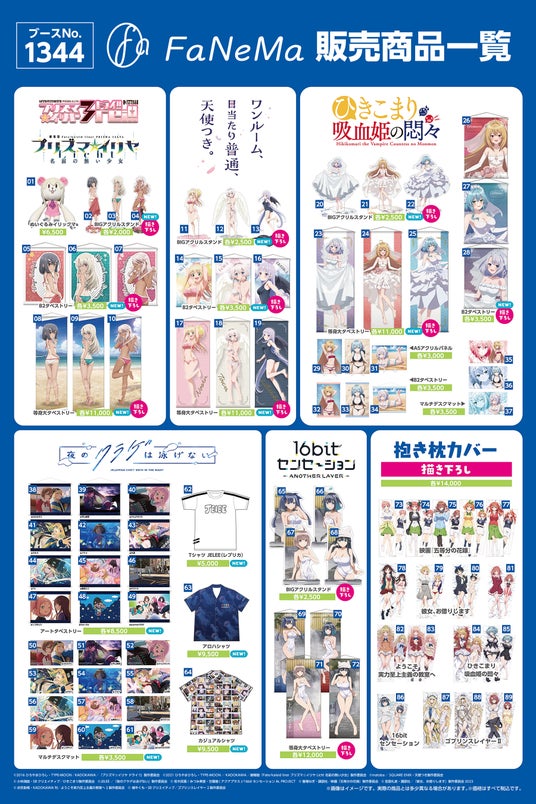 システムサービス株式会社(本社:東京都豊島区、代表取締役社長:田村宗弘)は、アニメ・マンガ・ゲーム作品等のキャラクター商品の企画・製作・販売をする自社ECサイト「FaNeMa」(URL:https://fanema.jp/)ブランドにて、2024年8月11日(日・祝)・8月12日(月・振替休日)に開催される「コミックマーケット104」に出展いたします。