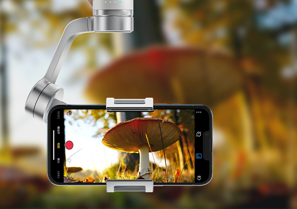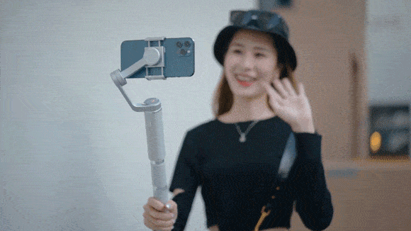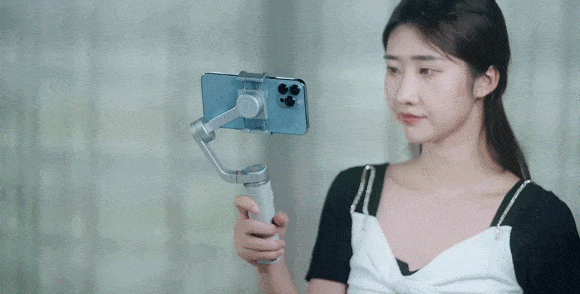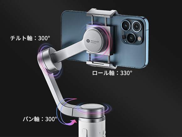 チルト軸がロックされ、スマホはロール軸の上下の動きと、パン軸の左右の動きに合わせて常に動き、安定した滑らかな映像を可能にします。