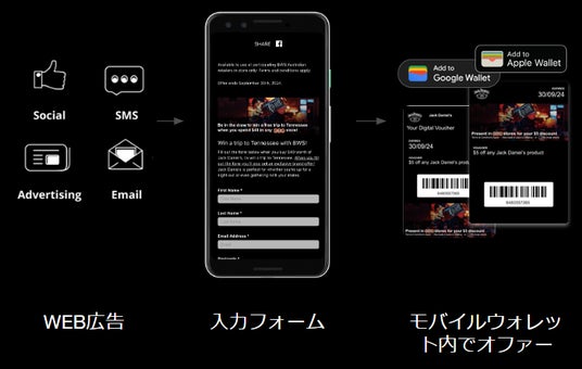 アップルやグーグルのウォレットのロック画面を通じてユーザーに情報を届けることが可能です。