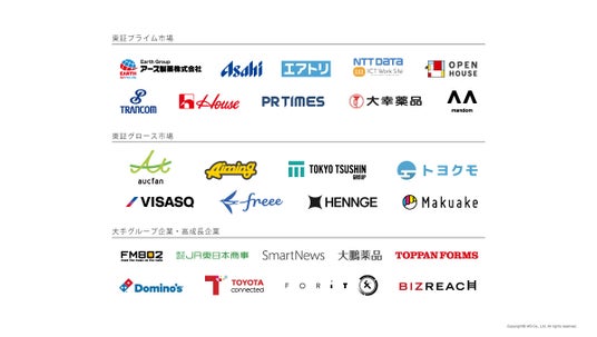 新しい働き方に合わせたオフィス環境の見直しに積極的な企業が増えている中、高成長企業を中心に、大手企業にも顧客層を拡大しており、多くの企業のワークプレイス構築を担当させていただいております。なお、2021~2023年における新規IPO企業301社のうち、当社クライアントは74社であり、約25%を占めております。