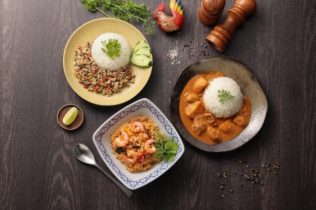 タイフェアの新しい取り組みとして、ベイシアオリジナルの「スパイスを効かせた絶品タイ料理3品セット」を数量限定にて販売いたします。タイにいるかのような本場の味と香りが食欲を刺激する、スパイスやハーブをふんだんに使った絶品タイ料理が冷凍にて楽しめます。アプリご予約・ネットショッピング限定販売となります。