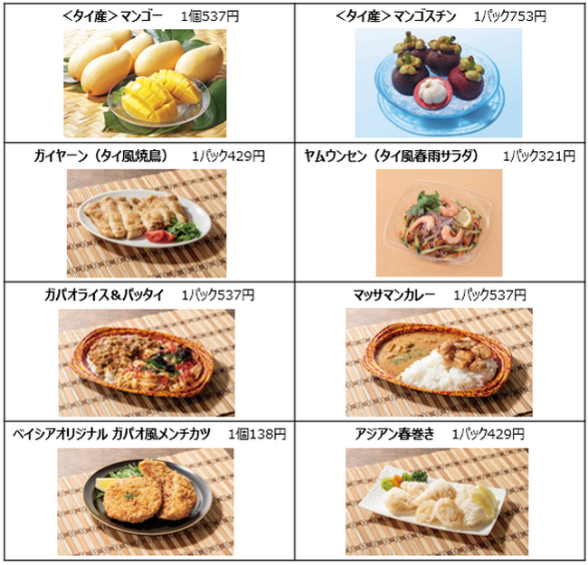 株式会社ベイシア(本社:群馬県前橋市、代表取締役社長:相木孝仁)は、6月28日(水)から7月11日(火)までの期間で「タイフェア」を開催いたします。タイの食材や調味料、お惣菜など約80商品に及ぶ豊富なラインナップを展開いたします。ご自宅にいながら本場タイ王国のおいしさが楽しめます。ぜひご自宅で味わってみてはいかがでしょうか。