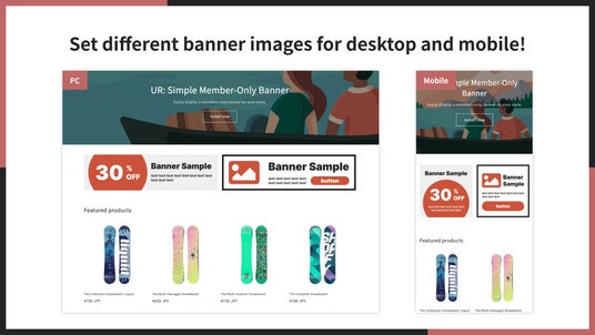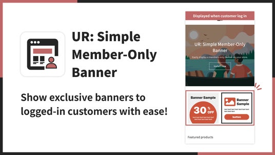 「UR: Simple Member-Only Banner」は「シンプルログインバナー|会員限定バナー表示アプリ」の海外版 Shopify アプリです。このアプリでは、Shopifyストアでログイン中の顧客のみにバナーを表示することができます。バナーはノーコードで簡単に設定でき、特別セールや会員向けキャンペーンの訴求に最適です。PCとスマホで異なるバナーを設定でき、見た目のカスタマイズやリンク先設定も自由自在。リピーターや会員施策を強化したいストア運営者におすすめのツールです。