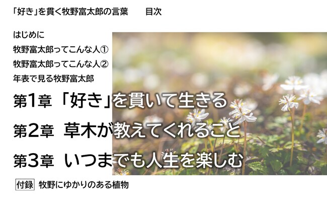 本書では、牧野富太郎の名言・俳句を紹介。「自分の好きなものを大切にして、人生を生ききる」その言葉や生き様がわかる1冊です。