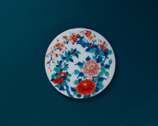 鍋島焼開窯350 周年を記念して制作された、四季の花々をあしらった絵皿です。