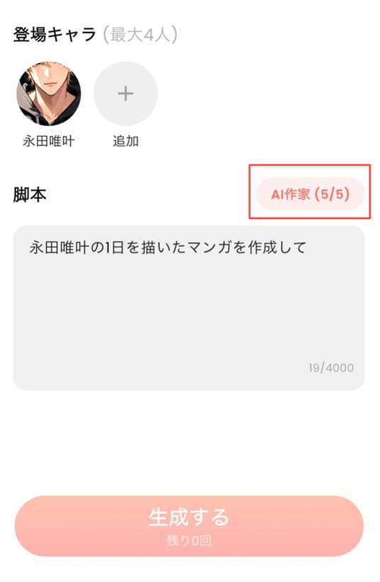 ※漫画の生成にはコインで購入できる回数の消費が必要となります