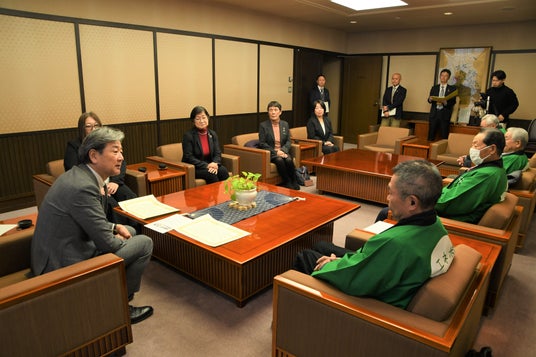 令和7年2月5日(水)に、同法人の山崎昌彦理事長と、TMBJの山本真紀代表が田中明高山市長を訪れ、受賞の喜びを報告しました。