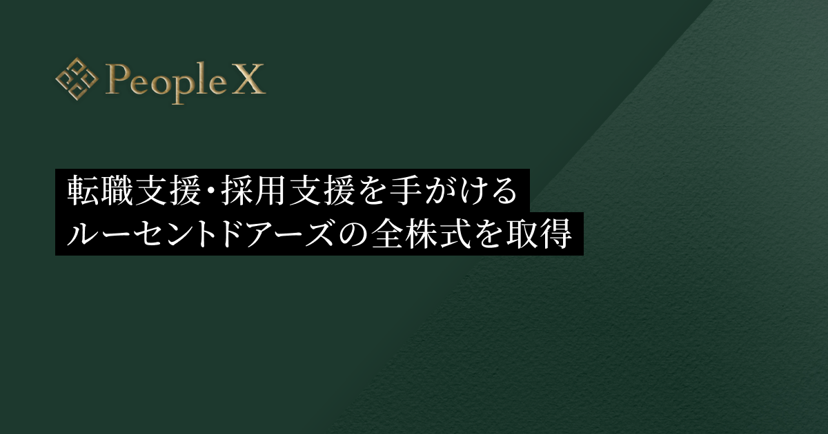 採用から活躍支援まで、AIで人事課題を解決する株式会社PeopleX(本社:東京都新宿区、代表取締役 CEO:橘 大地、以下:当社)は、転職支援・採用支援を手がけるルーセントドアーズ株式会社(東京都港区、代表取締役:黒田 真行)の全株式を取得し、子会社化したことをお知らせいたします。