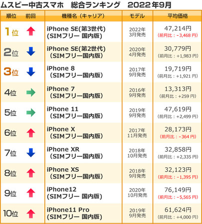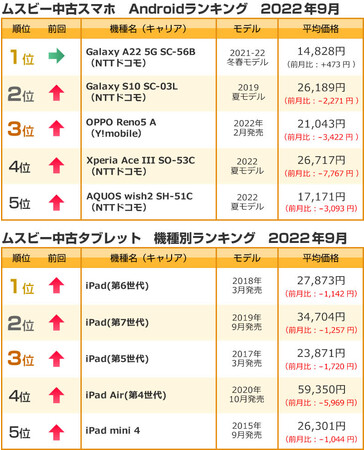 株式会社ウェイブダッシュ(本社:東京都千代田区、代表取締役 河野 由紀)が運営するフリーマーケットサイト「ムスビー」(https://www.musbi.net/) の2022年9月の中古スマホ・中古タブレットランキングを発表いたします。