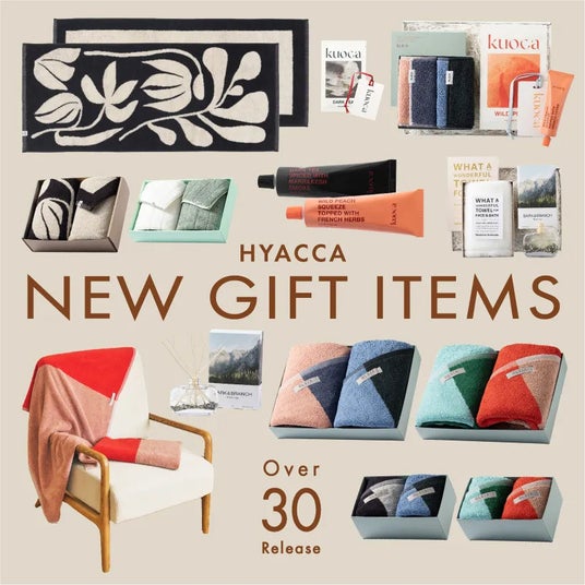 昨今、自宅で過ごす時間の質を重視する傾向が高まり、ギフトにおいても「実用性」だけでなく、使うたびに心が満たされる「体験的価値」が求められています。そこでHYACCAは、肌に触れるタオルの「触覚」と、空間を彩る「嗅覚」に着目。今治タオルの技術が光る〈THE(ザ)〉や〈バーク&ブランチ〉のディフューザー、韓国トレンドのハンドケア〈kuoca(クオカ)〉など、国内外から評価の高いブランドをバイヤーが独自にセレクトしました。結婚・引越し祝いや内祝いなど、大切な方への贈り物はもちろん、忙しい日々を過ごす方へ「心地よい時間」を届けるギフトコレクションです。