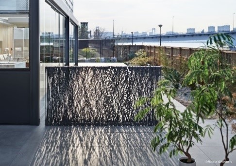 CFRPを使用することで柱がなくても自立し、光、影、気配といったニュアンスを演出します。