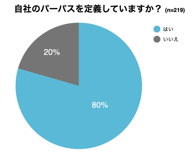 80%がパーパスを定義しているほか、ほぼすべての企業が選考時にパーパスへの共感を重視する結果に