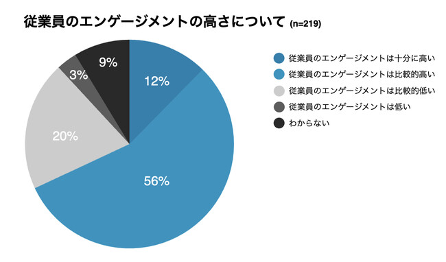 従業員のエンゲージメントの高さについて聞いたところ、高い(十分に高い+比較的高い)と回答した企業は68%という結果に。