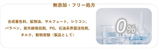 合成着⾊料、鉱物油などをはじめとし、10項目のフリー処方を実現いたしました。