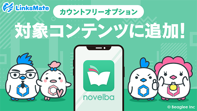 株式会社LogicLinks(以下LogicLinks、本社:東京都渋谷区、代表取締役社長:春田康一)は、MVNOサービス「LinksMate」において2022年12月26日(月)よりカウントフリーオプション対象コンテンツとして株式会社ビーグリー(本社:東京都港区、代表取締役社長:吉田 仁平)にて配信中の「ノベルバ」を新たに追加することをお知らせいたします。