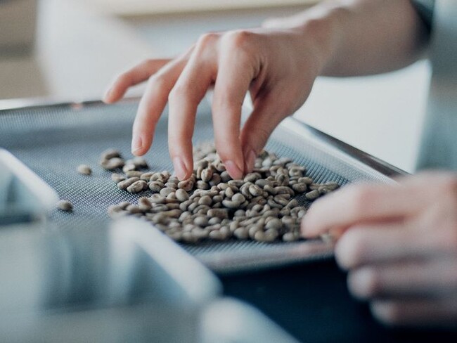 前橋店のロースタリーで一粒一粒、手作業で良質なコーヒー豆をピックアップ。美味しいコーヒーの秘訣です。