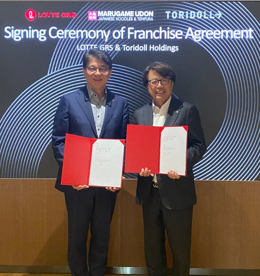 食の感動体験を提供する株式会社トリドールホールディングス(東京都渋谷区、代表取締役社長 兼 CEO 粟田 貴也、以下、「トリドール HD」)は、この度、Lotte Global Restaurant Service Co. Ltd.(以下、「Lotte GRS」)とマスターフランチャイズ契約を締結しました。Lotte GRSは韓国の主要な大手企業グループの一つであるロッテグループの一員で、さまざまなレストランブランドを展開する韓国を代表する総合外食企業です。