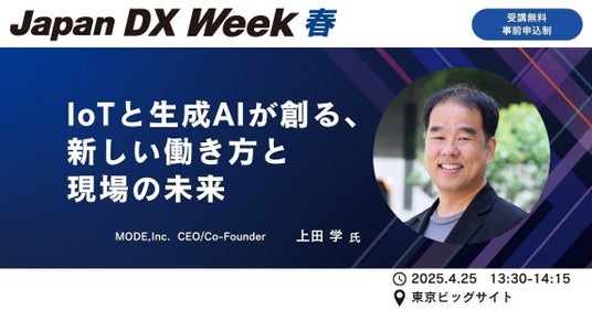 シリコンバレー発のIoTプラットフォームを提供するMODE, Inc.(本社:米国・カリフォルニア州、日本支店:東京・千代田区、CEO:上田 学、以下、MODE)は、2025年4月23日(水)~25日(金)に東京ビックサイトで開催されるJapan IT Week 春展に出展します。