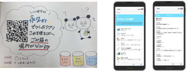 文京学院大学(学長:櫻井隆)は、人間学部心理学科 永久ひさ子教授と、心理学科3年生20名が、今年「社会的課題を心理学とアプリで解決」をテーマとした研究を実施しています。この度、第一弾研究となる身の回りのゴミの捨て方や捨て場に困る方を救済する“ゴミ箱難民救済アプリ”「ゴミる」を開発したことをお知らせいたします。本アプリでは、ゴミの分別方法と大学内のゴミ箱情報を検索することができ、どこに捨てたらよいかの日常の悩みを解決します。