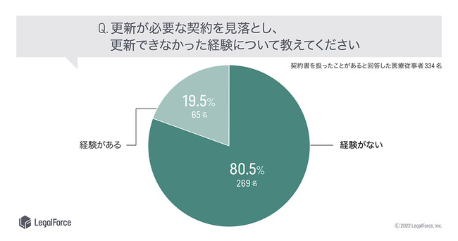 ・19.5%(65名)が、「必要な契約更新を見落とし、更新できなかった経験がある」と回答
