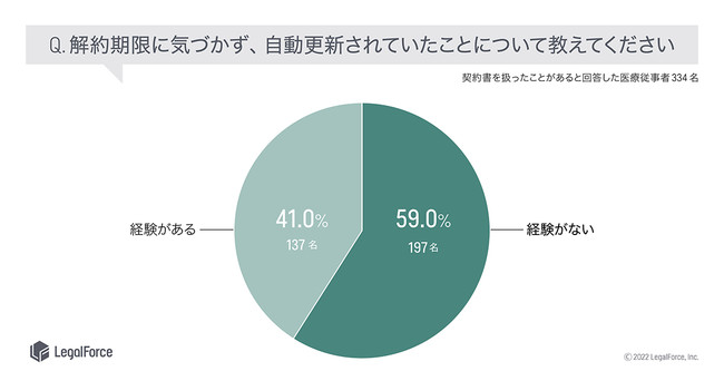 ・41.0%(137名)が、解約期限に気づかず、自動更新されていた経験があると回答
