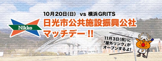 H.C.栃木日光アイスバックスは、2024年10月20日(日)開催の日光シリーズ、横浜GRITS戦を「日光市公共施設振興公社マッチデー」として開催いたします。