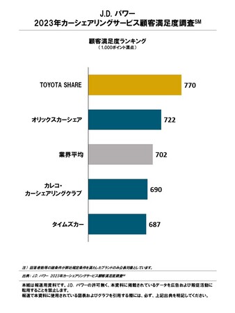 J.D. パワー 2023年カーシェアリングサービス顧客満足度No.1を発表