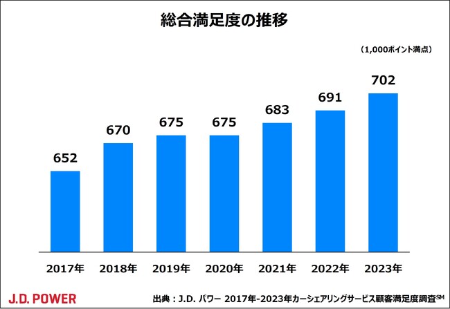 カーシェア市場全体の顧客満足度、過去最高を更新して初の700点台に