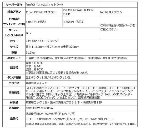 製品ページ:https://premium-water.net/waterserver/famfit2/