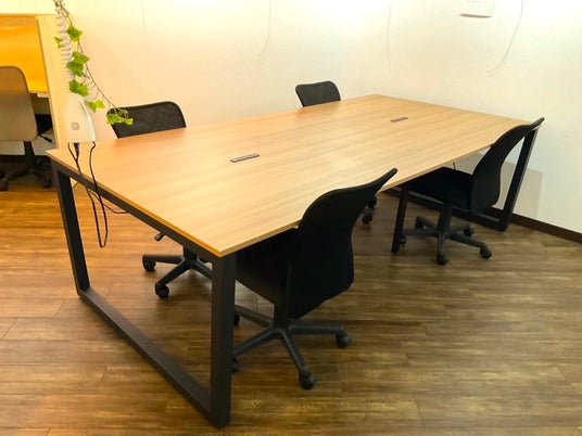 4名掛けのテーブルは休憩や食事スペースとしても利用可能。書類を広げて行う事務作業の場所としても最適です。