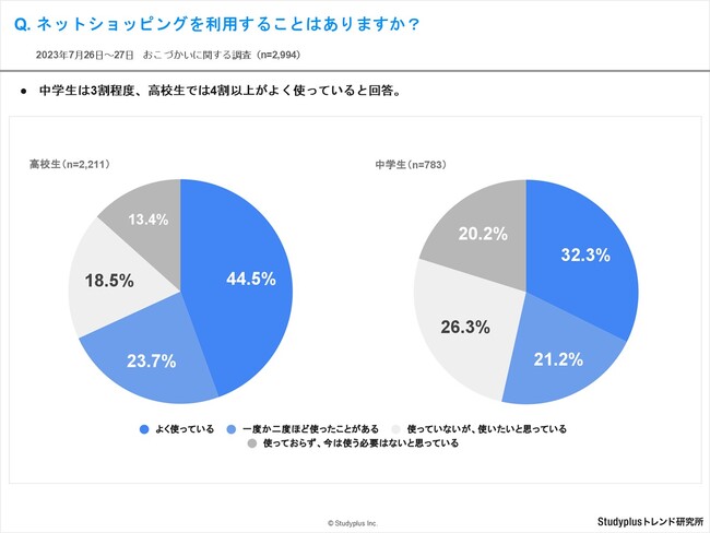・中高生は3割程度、高校生では4割以上がよく使っていると回答。