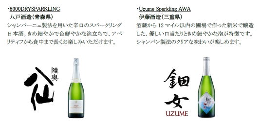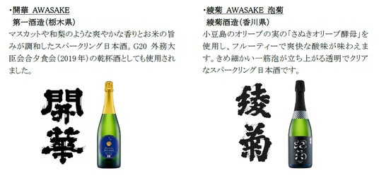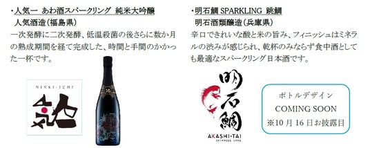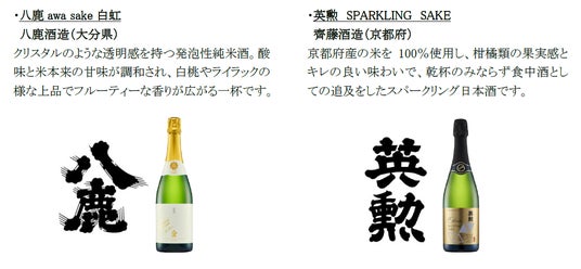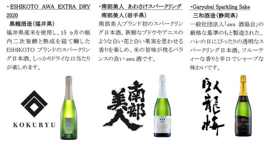 10月24日(木)には、フランスの「Kura Master 2020」スパークリングサケ部門最高賞である審査員賞を受賞した、群馬県の永井酒造のスパークリング日本酒「MIZUBASHO PURE」を、19日(土)には、220年以上の歴史がある黒龍酒造が、15ヵ月の瓶内二次発酵と熟成を経て醸したESHIKOTOブランドのスパークリング日本酒「ESHIKOTO AWA EXTRA DRY 2020」を提供するなど、多彩なawa酒を味わえます。