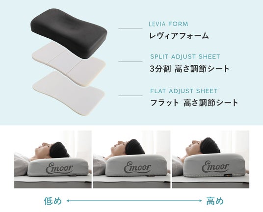 「身体に合った寝る・座る・たたむ」を提供する健康家具ブランドEMOORを展開する株式会社エムール(東京都立川市:代表取締役 高橋 幸司/以下、エムール)は、2026年1月20日より「LEVIA PILLOW(以下、レヴィアピロー)」の販売を開始しました。