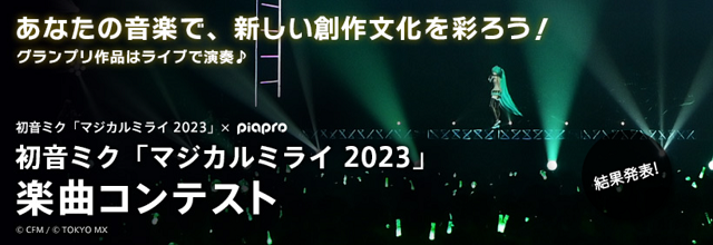 ▼『初音ミク「マジカルミライ 2023」楽曲コンテスト』結果発表ページ