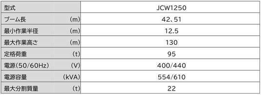 ■風車建設用タワークレーン「JCW1250」特長