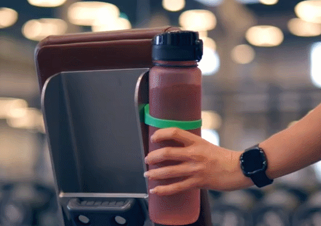 【GYMBUTLER】はボトルサイズを選ばずジムマシンに取り付けられて強力マグネットでスチール製のジムマシンに、あなたのドリンクボトルをワンタッチ装着!