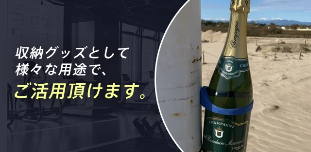 シリコンゴム製ホルダーでボトルのサイズを選ばずホールド