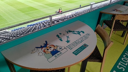 各テーブルには、V・ファーレン長崎のクラブマスコットのヴィヴィくんがデザインされており、長崎県の観光の魅力を紹介しています。長崎県在住の方だけでなく、ビジターサポーターの方も長崎観光に行きたくなるような空間を演出しています。