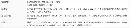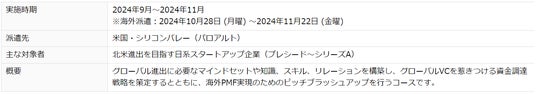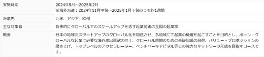 今年度も引き続き、世界中のスタートアップ・エコシステム地域に、グローバル展開や起業を志す方々を派遣し、世界のトッププレイヤーと繋がり、学ぶ機会を提供しチャレンジを後押しします。