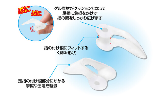 プニプニゲルが足指の間隔を適度に保ち理想の位置に