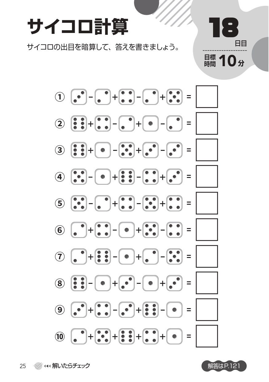 各問題には解く「目標時間」を設けることによって脳トレ効果を高められます。
