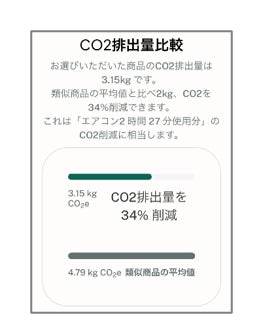 1商品あたりのCO2排出量の目安については、「エアコンの使用時間」として表記することで、消費者にとってより身近に感じられるエネルギーを提示します