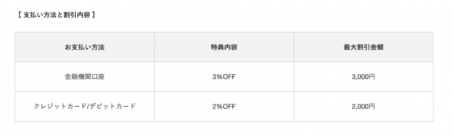 - お支払い方法に応じて、割引内容、最大割引金額が異なります。
