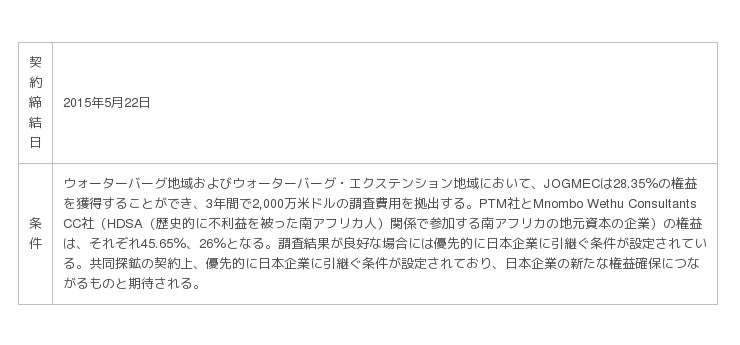 〇南アフリカ共和国・白金族プロジェクト、北部隣接鉱区との統合について~更なるプロジェクト価値の向上に向けて~(2015年5月27日発表)