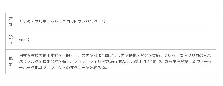 特に、1オンス当たりの生産コストは、現在南アフリカ共和国ブッシュフェルド地域で生産されている白金族鉱山と比較して最も安価な生産コストであると見られています。