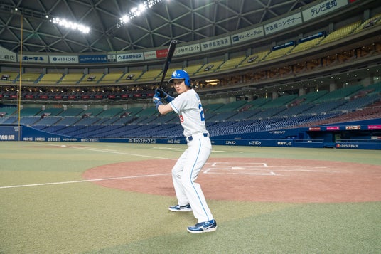 バンテリンドーム ナゴヤのグラウンドに立てたことに興奮しました。外野フェンスがセ・リーグで二番目に高い(4.8m)ので、ホームランを打つシーンの撮影には苦労したし、選手の皆さんの打撃力を実感しましたね。最終的には少し手前から打たせてもらいスタンドに入れることができたのですが、スタッフからも拍手をいただいて、