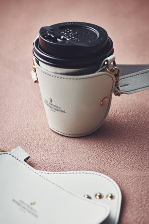 20周年を記念してテイクアウトコーヒー&ティーに便利につかえるカップホルダーをオリジナルで製作しました。レザー仕様のホルダーは繰り返し使用でき紙ごみ削減に貢献します。ホルダーはボタンが3つ、サイズにあわせて大きさを調整できS、M、Lいずれのサイズでも対応可能です。取っ手があるので両手が空き使い勝手バツグン!使わないときはチャームとしてまたはコンパクトに平たくたたんでバックの中に。環境への配慮とおしゃれが両立するストリングスロゴ入りカップホルダーは、アートディナー付きステイプランで宿泊の皆さまにプレゼントいたします。