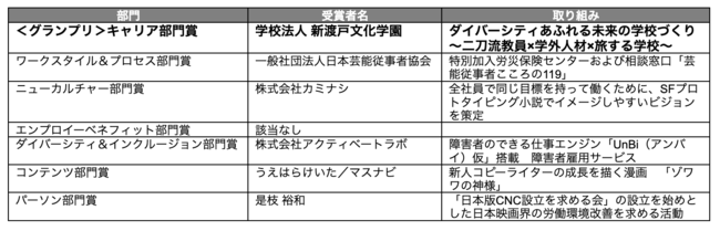 ~ 「キャリア」「ワークスタイル&プロセス」「ニューカルチャー」など7部門の受賞企業・団体を発表 ~
