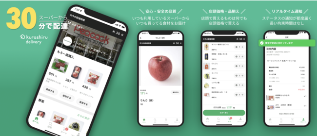従来の一般的なネットスーパーが商品の配達まで数時間から一日を要するのに対し、「クラシルデリバリー」は最短30分でのお届けが可能です。