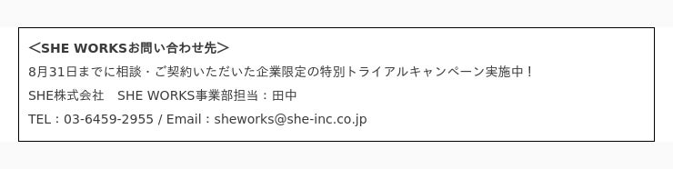 株式会社ユーザベースでお仕事をされている2名のSHE WORKSスタッフからコメントをいただきました。